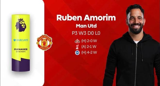 阿莫林入圍英超10月最佳教練候選名單,曼聯(lián)在10月的3場(chǎng)比賽中都拿到了勝利。